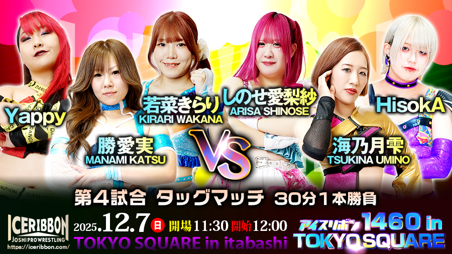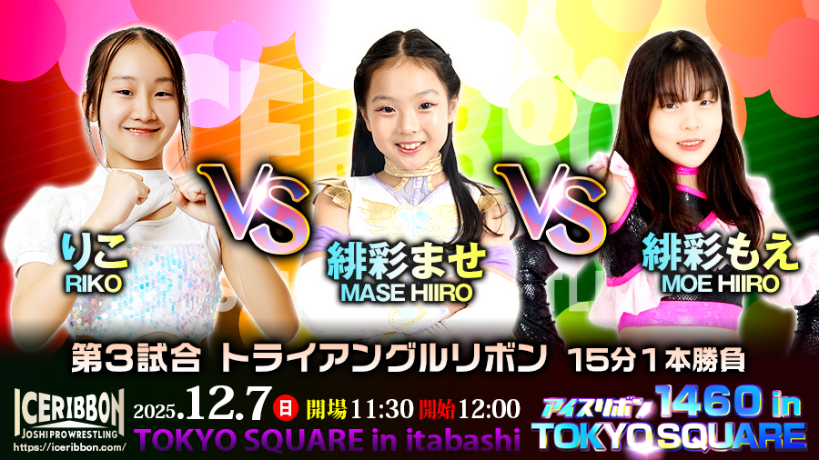 「アイスリボン1460 in TOKYO SQUARE」2025年12月7日(日)11時30分開場/12時00分開始◆第3試合 トライアングルリボン15分1本勝負緋彩ませ vs りこ vs 緋彩もえ