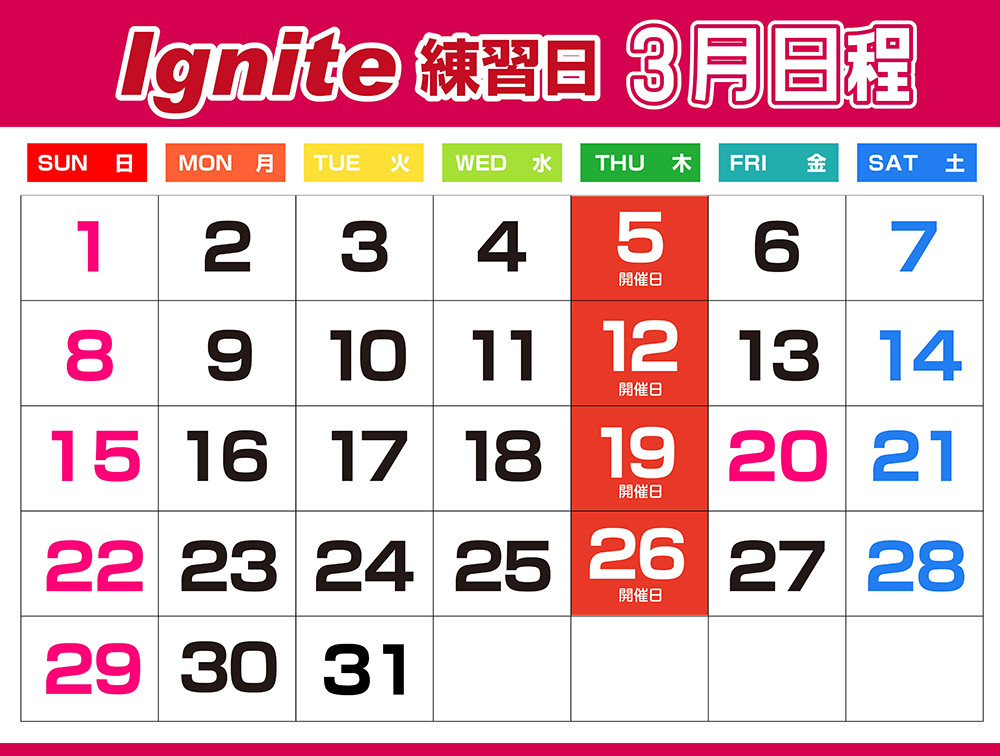 【Ignite練習日】 3月日程のお知らせ